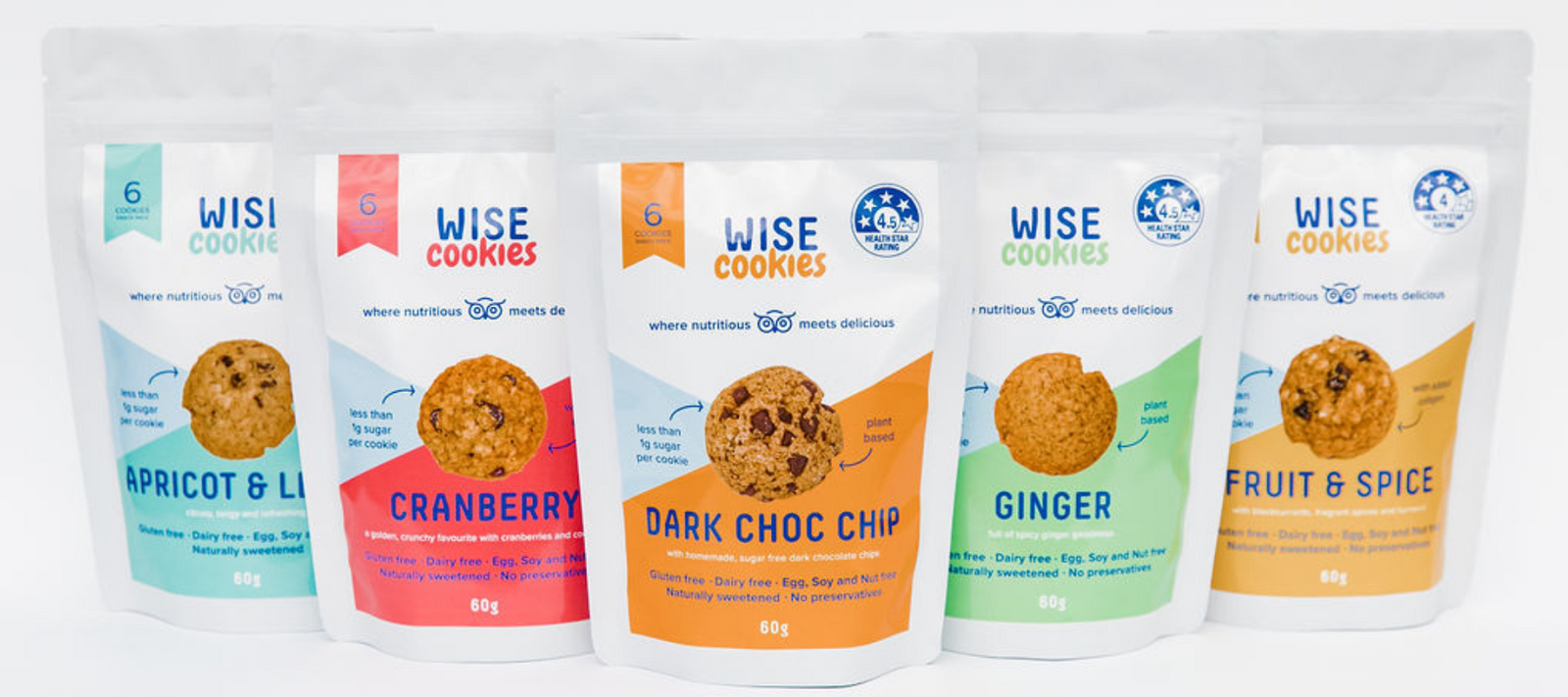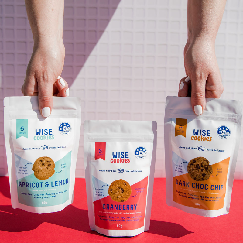 Great news for cookie lovers! Our Wise Cookies are the perfect way to reinvent your healthy snack list. Allergy friendly, with more of the good stuff and less of the bad. Each delicious flavour has 4.0 – 4.5 Health Stars. Less sugar, more protein and fibre.